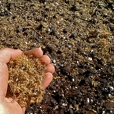 Hojas secas trituradas finamente sin llegar a polvo.